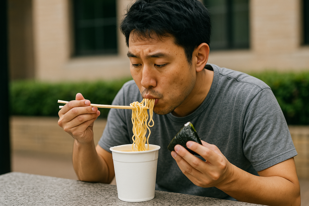 管理人オニギリとカップ麺が昼食なら、これにプロテインを飲めばタンパク質の補給になる