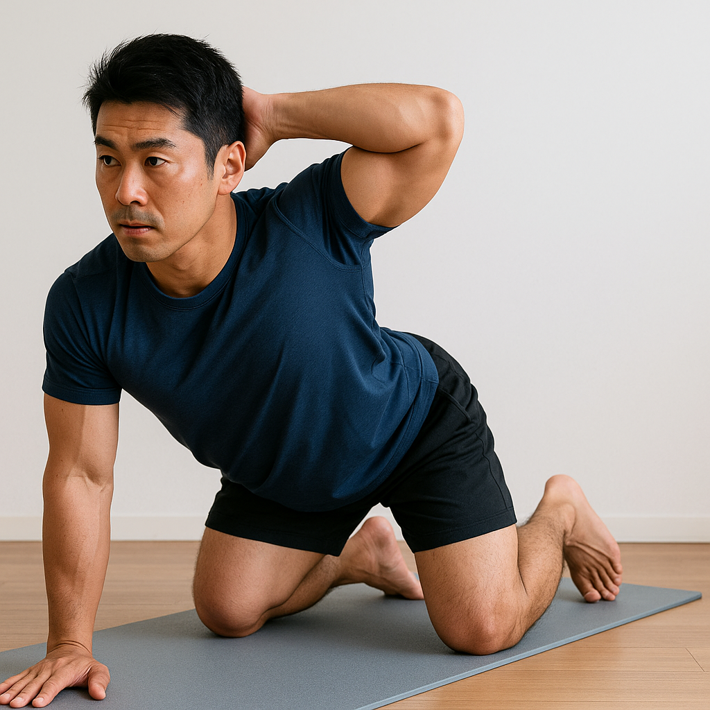 上半身の回旋ストレッチ(バードドッグ変形)