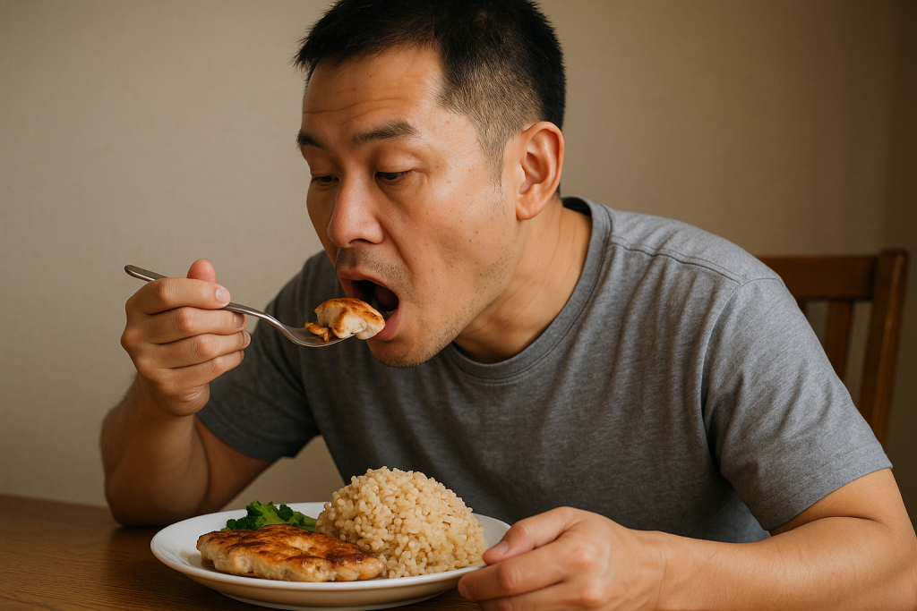 → 鶏むね肉・玄米・味噌汁など、旨味と満足感のある“和の食事”を1日置きに。