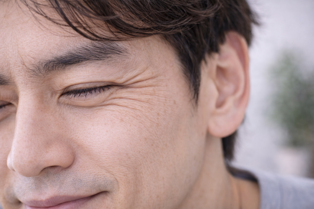 ウェーブ男性は線が細くて肩幅が控えめだからこそ、肌の質感が整うと“品が出る”。