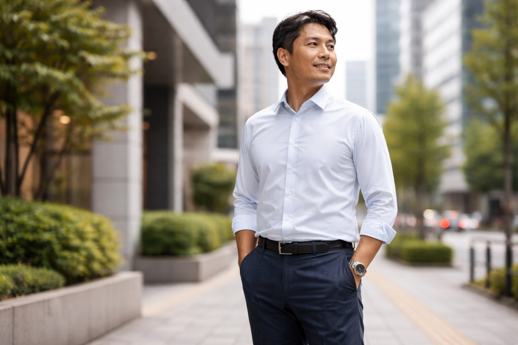 コツコツ筋トレを続けた結果、気づけば体型はストレート寄りに。