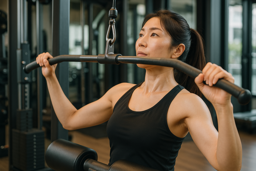 - ラットプルダウンで背中を引き締める